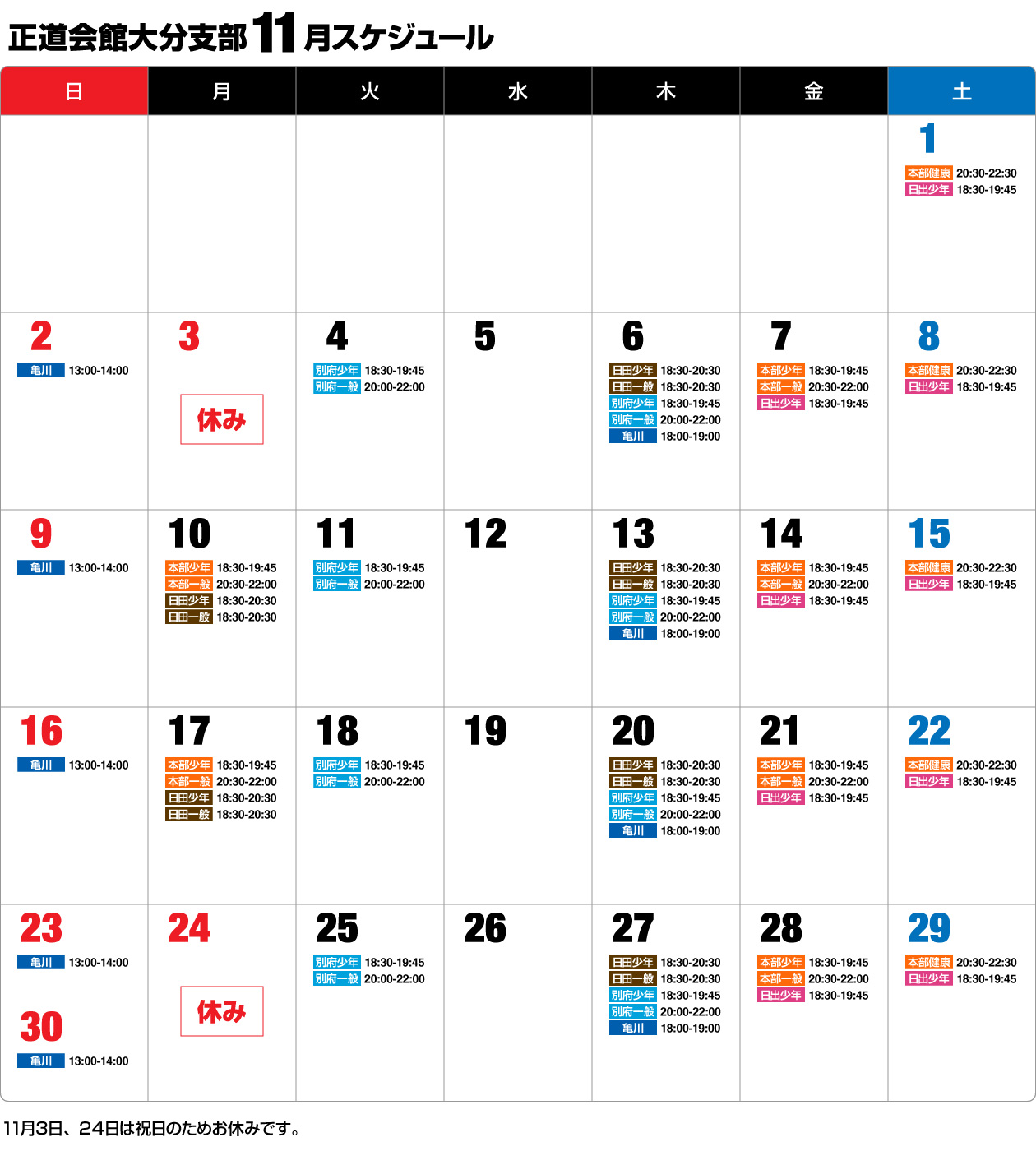 2025年11月のスケジュール